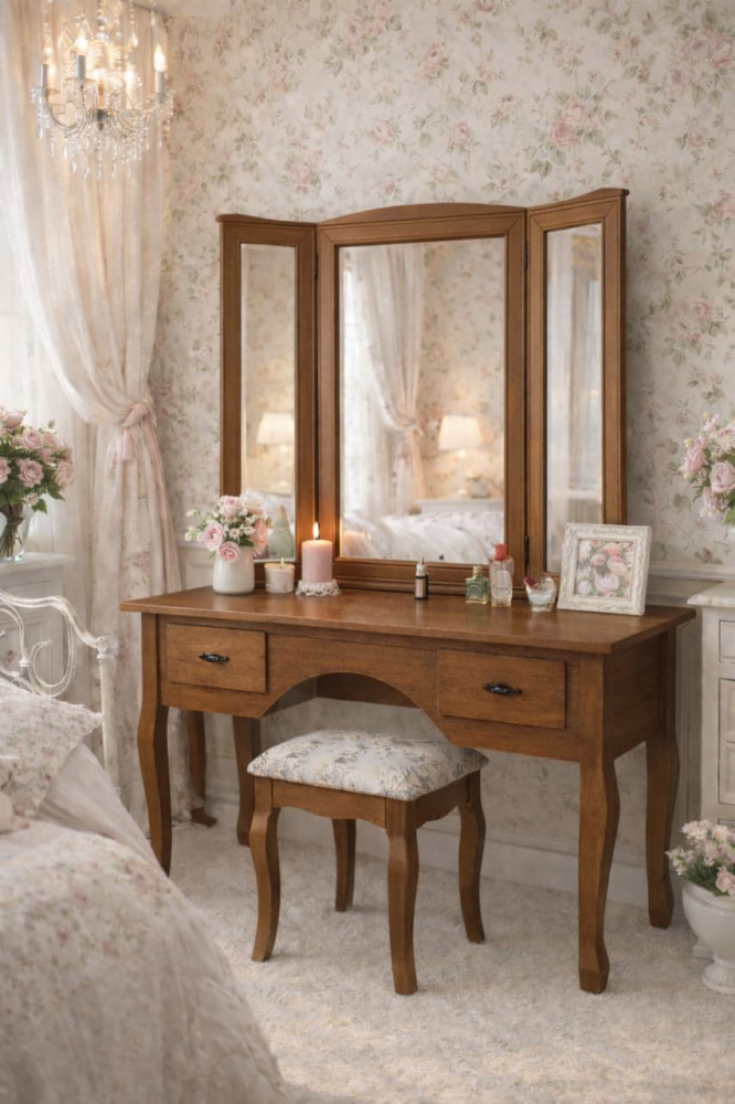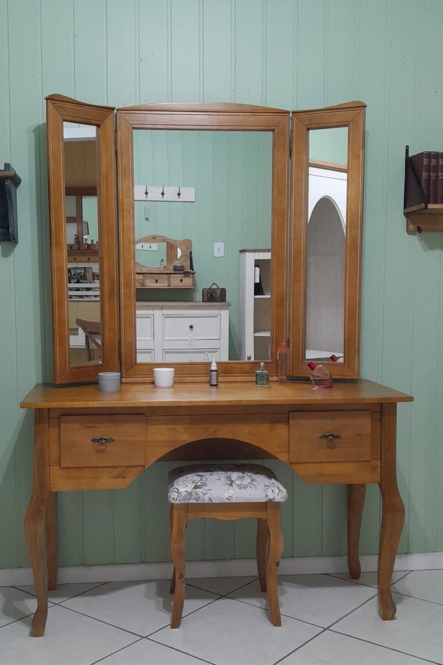 3205 - Penteadeira Elizabeth Castanho Com Banqueta