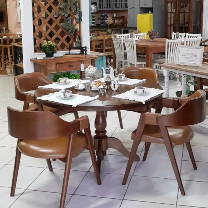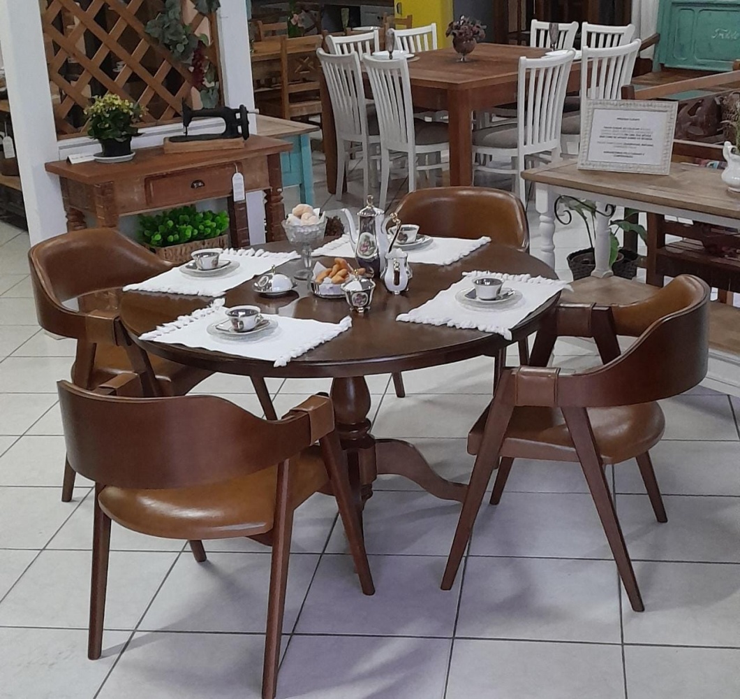 3217 - Conjunto de Mesa Redonda de Jantar Inglesa (1,30) com 04 cadeiras Dallas Castanho