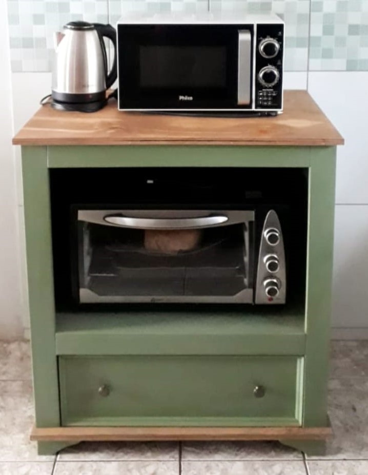 3225 - Balcão com gaveta para fornos Verde Musgo Envelhecido c/ Cera