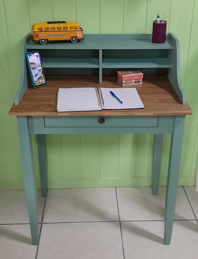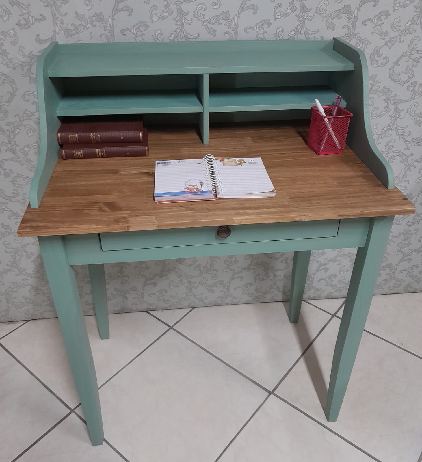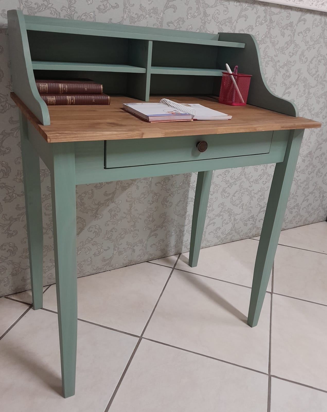3229 - Mini Escrivaninha com Nicho Verde Antigo Envelhecido com Cêra