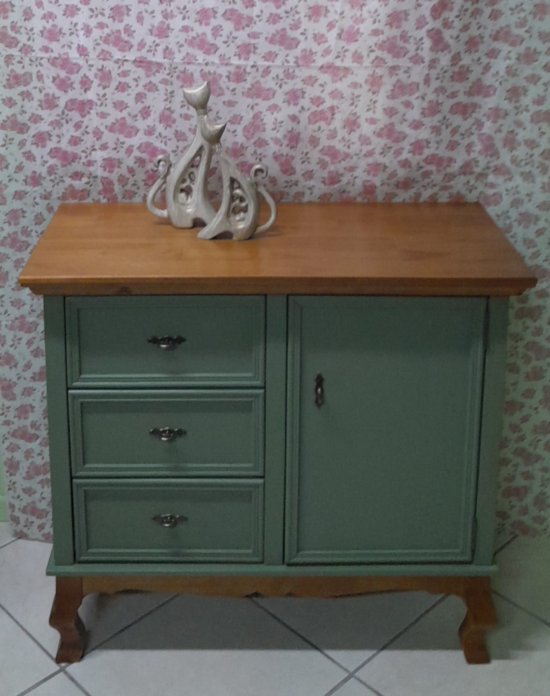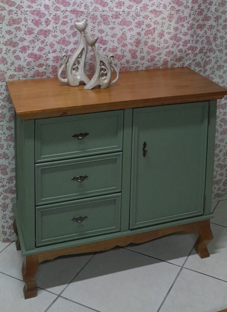 3233 - Cômoda Sapateira Luis Felipe Pequena Verde Musgo Envelhecido com Castanho