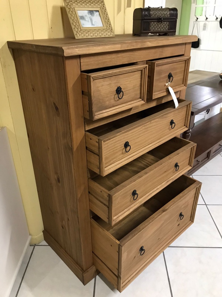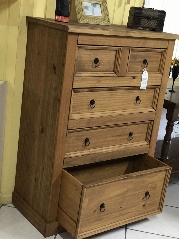 3254 - Comoda Rústica Alta 5 Gavetas Cera