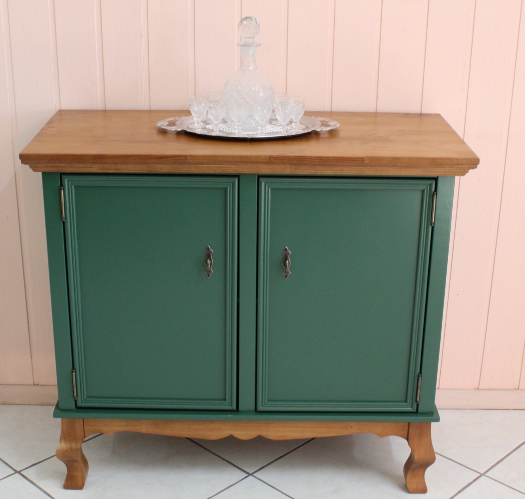 3320 - Balcão Luis Felipe 02 portas Verde Militar com Castanho