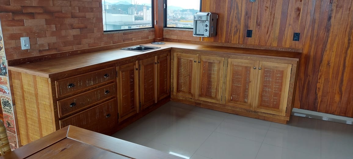 3326 - Cozinha Rustica Planejada em Madeira de Demolição