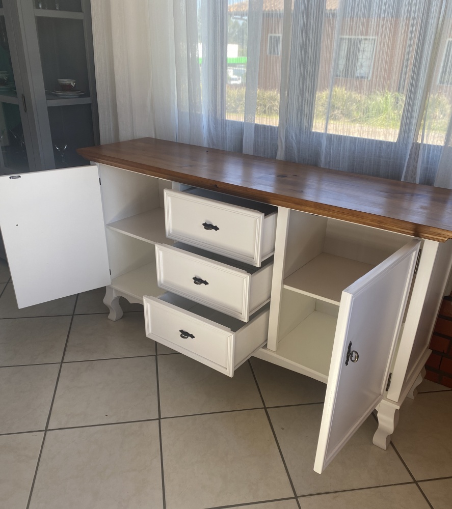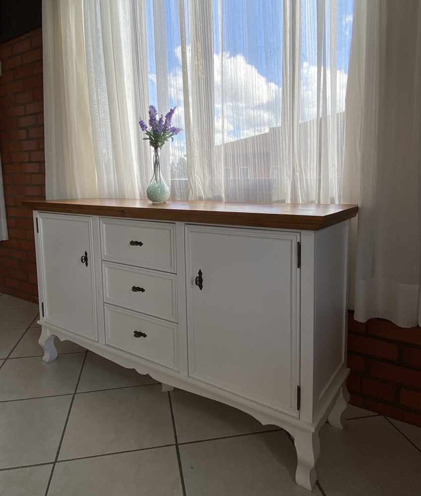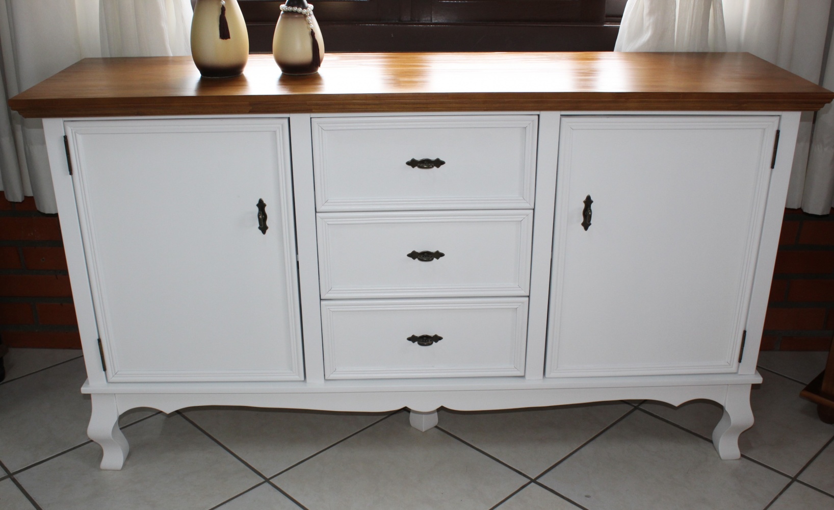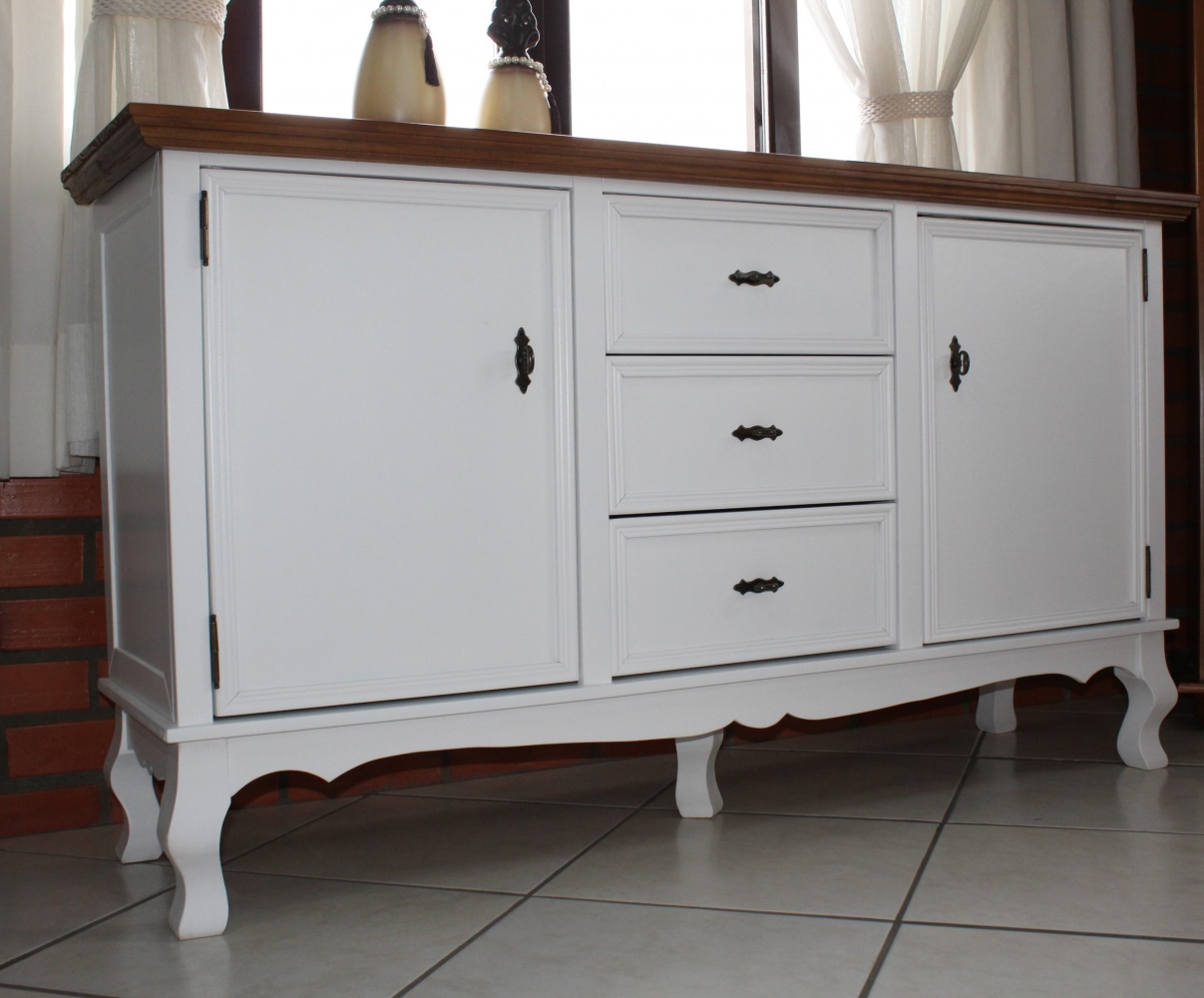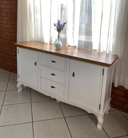3330 - Balcão Luis Felipe Branco Laqueado com Castanho
