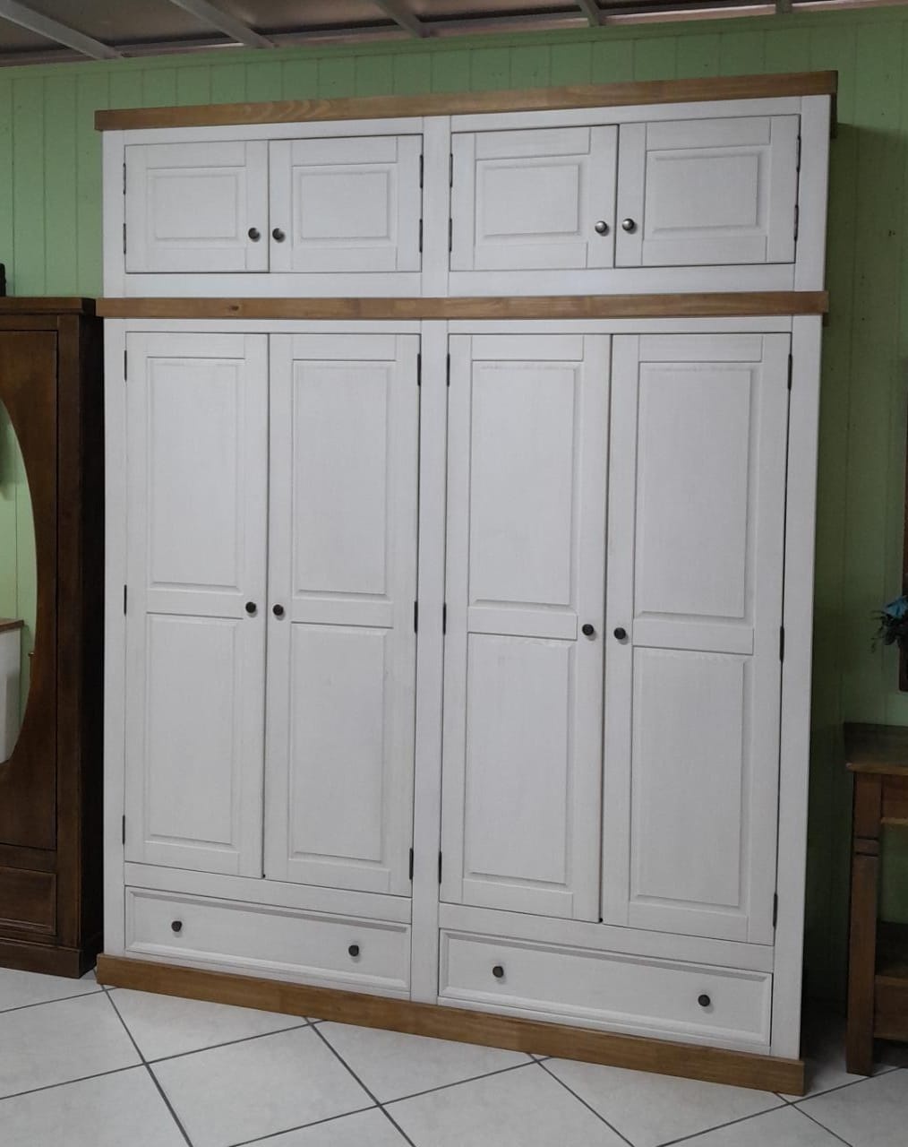 3353 - Roupeiro Reto 4 portas com Maleiro provençal com Cera