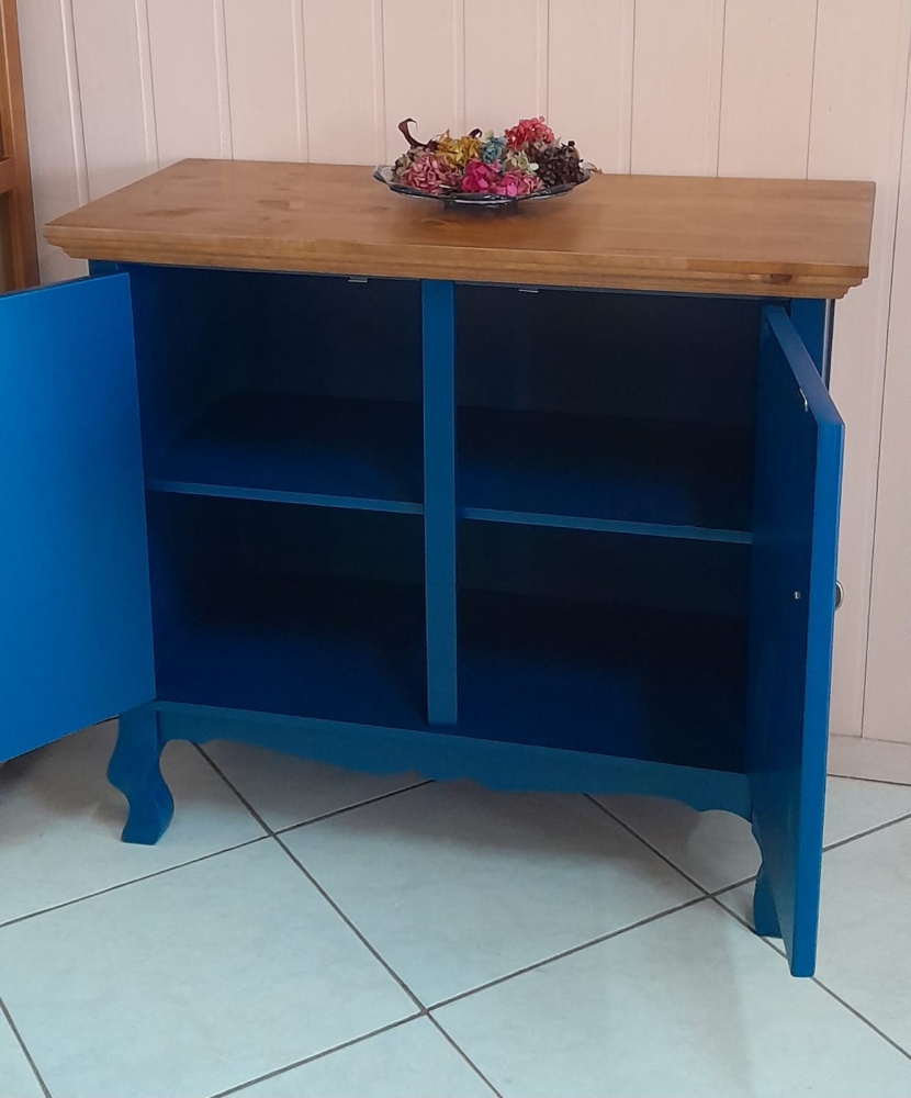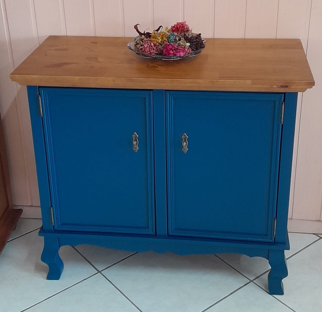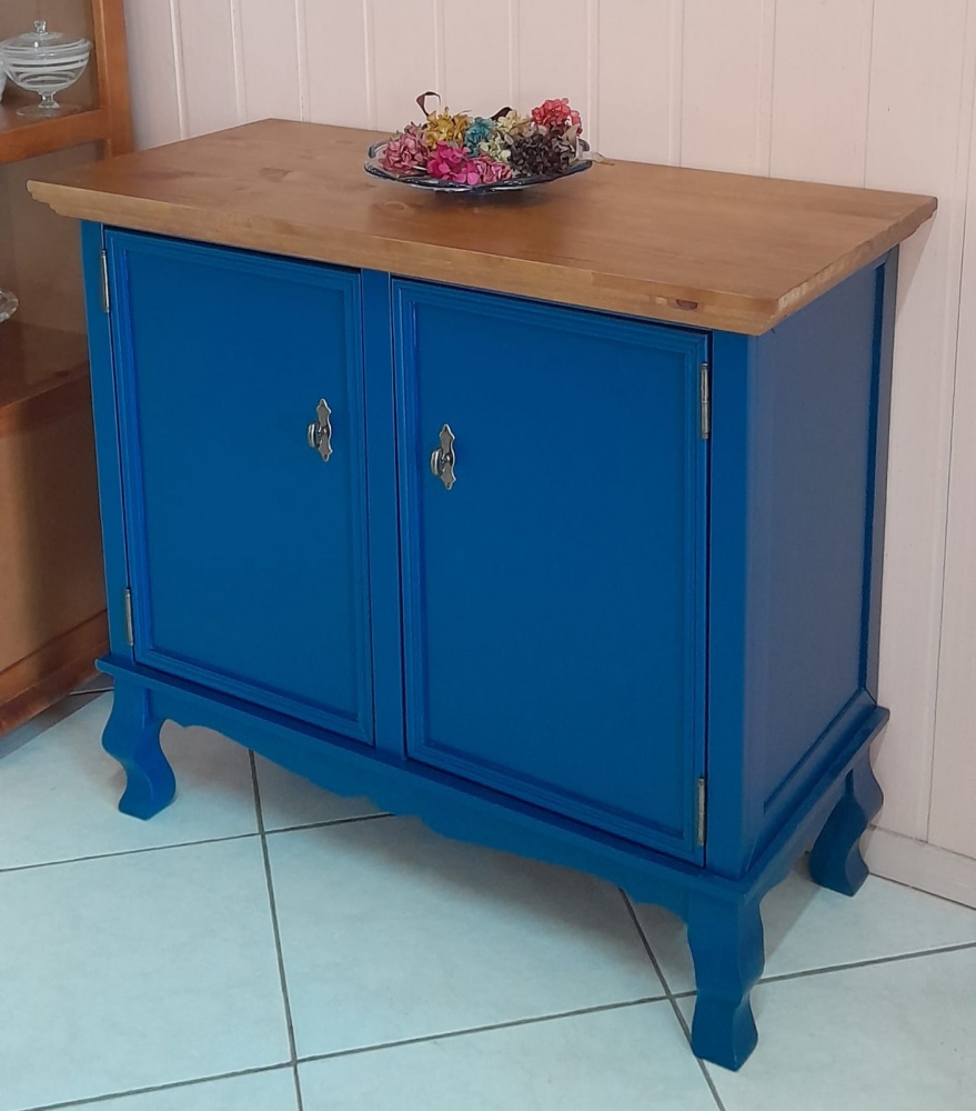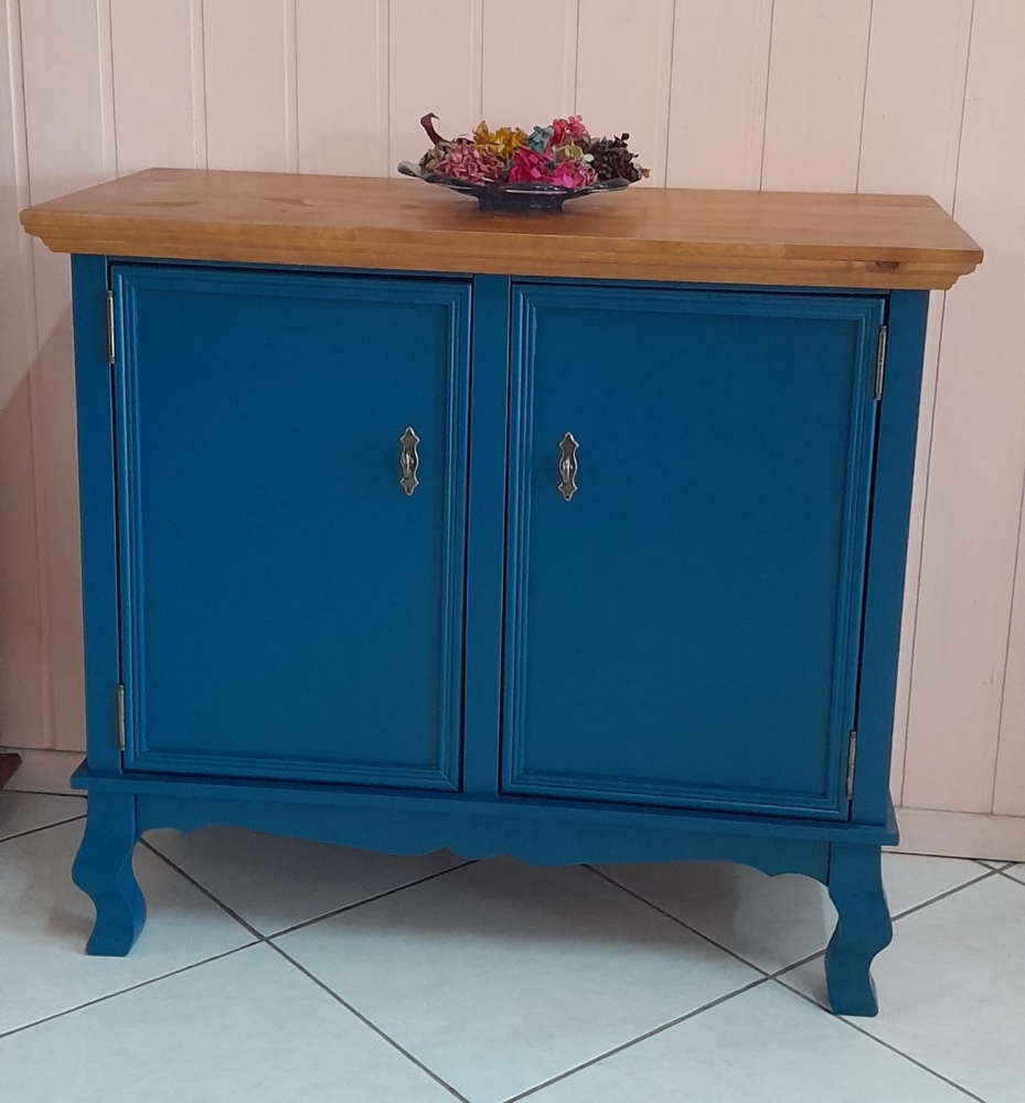 3355 - Balcão Luis Felipe 02 portas Azul Bic Laqueado com tampo Castanho