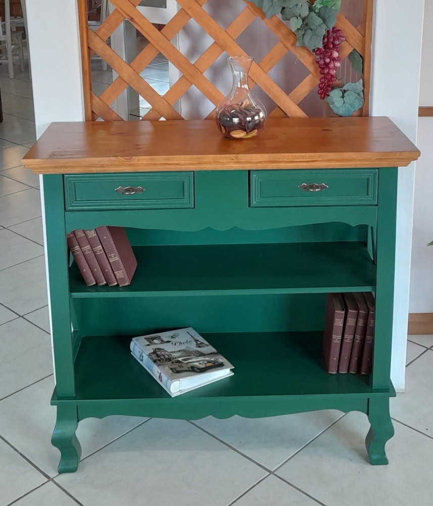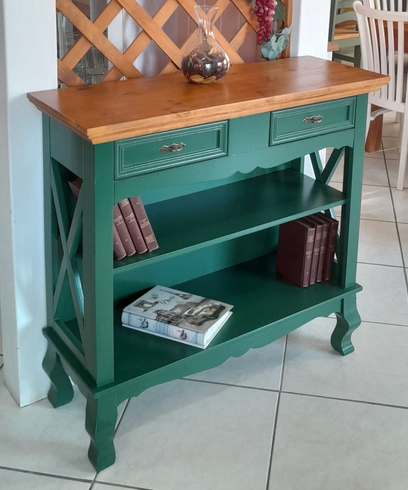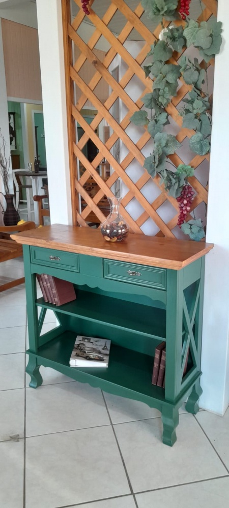 3356 - Aparador X com Pés Luis Felipe Verde Militar com tampo Castanho