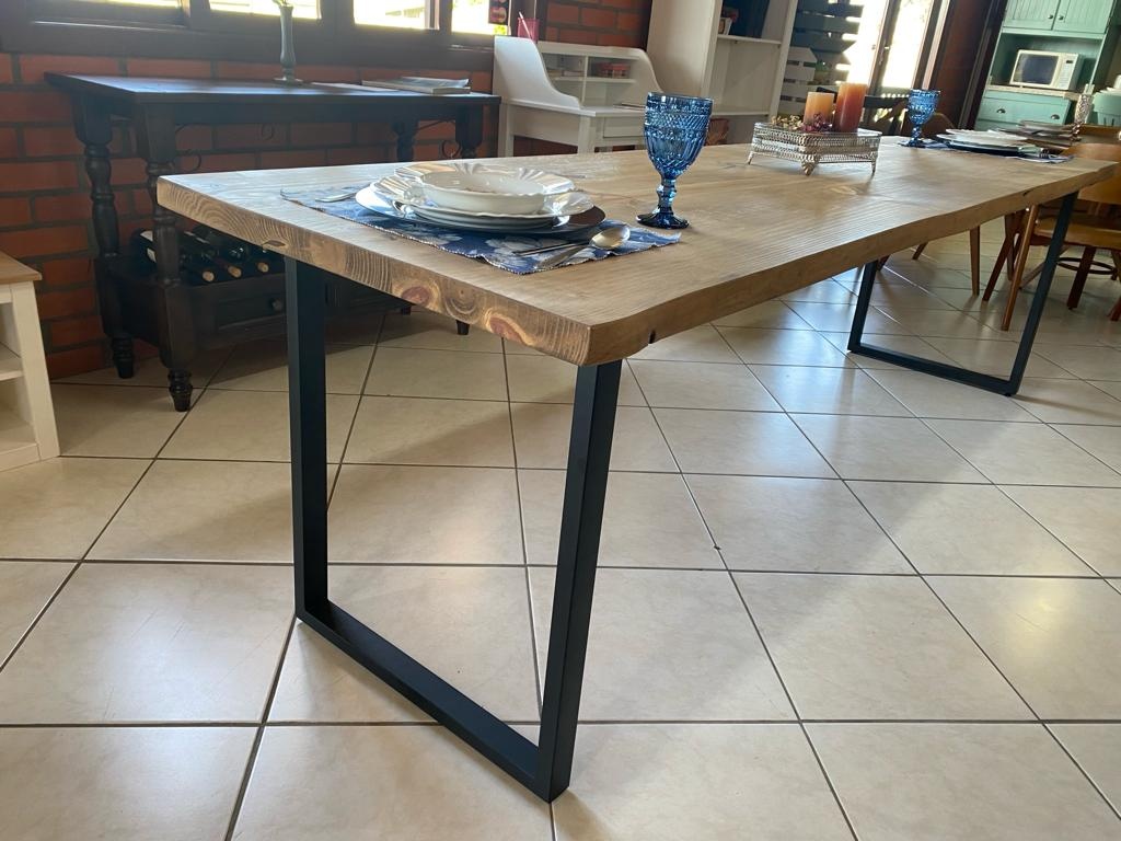 3371 - Mesa Rustica Industrial Cera com pés Pretos