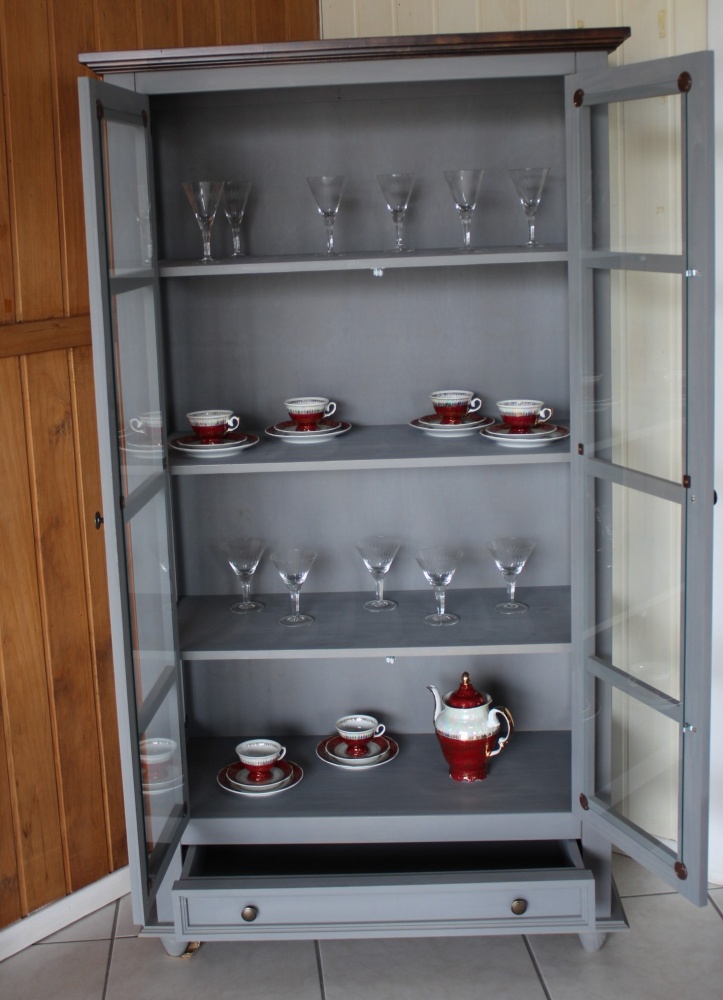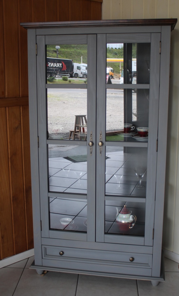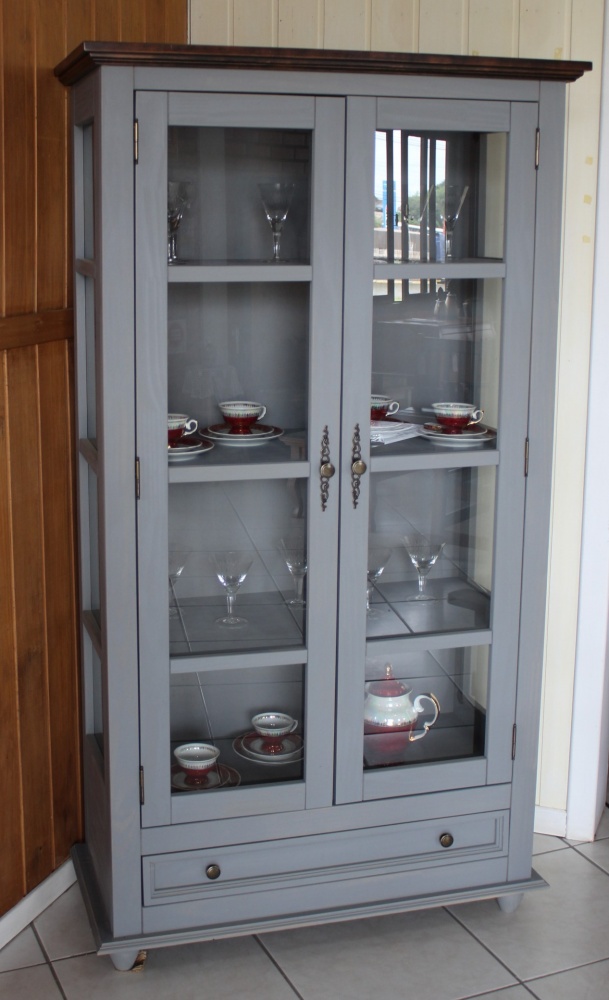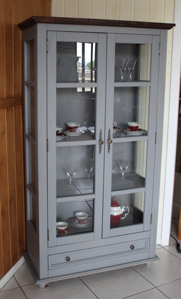 3372 - Cristaleira Paris Cinza Envelhecido com Castanho Envelhecido