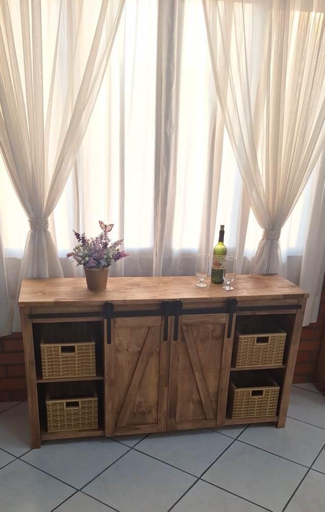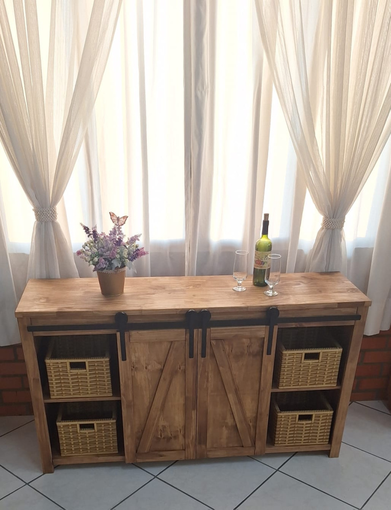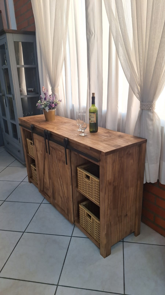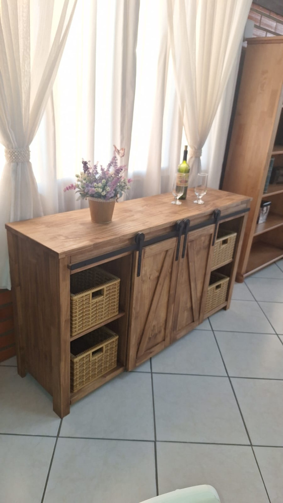 3442 - Balcão Rustico 02 portas com Portas de Celeiro Cera