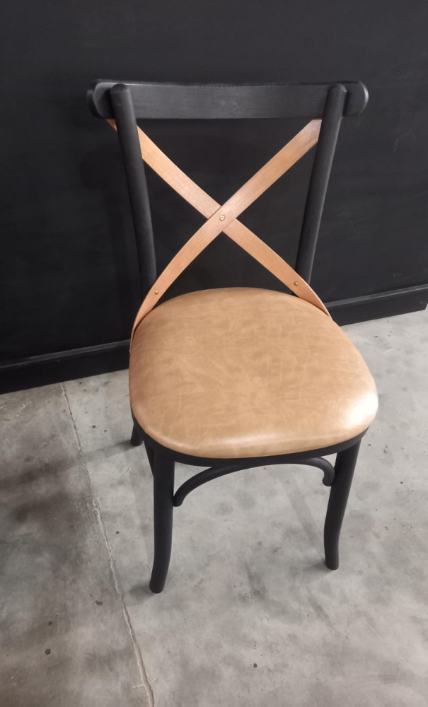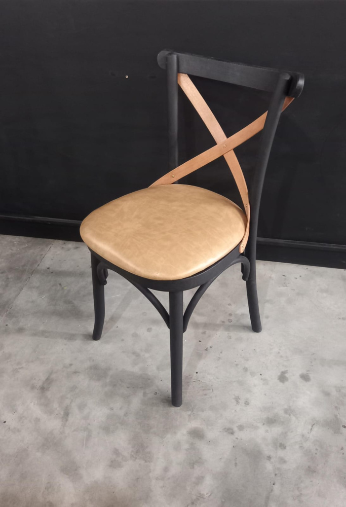 3443 - Cadeira X Estofada Preto Envelhecido com "X" G.A