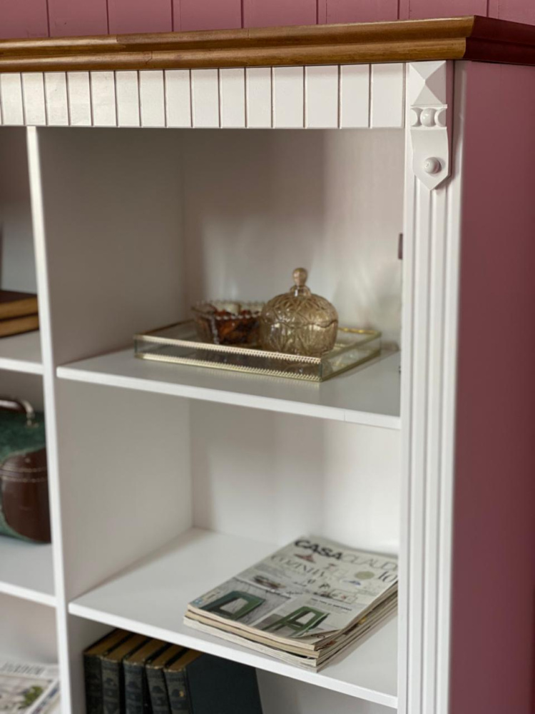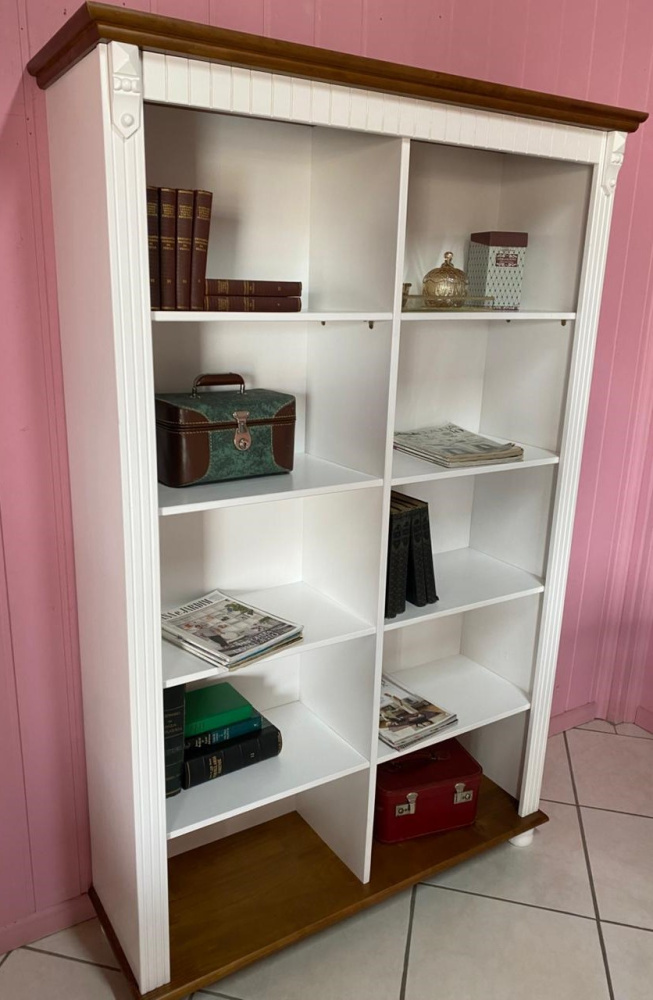 3444 - Estante Livreiro Dupla Branco Laqueado com Castanho