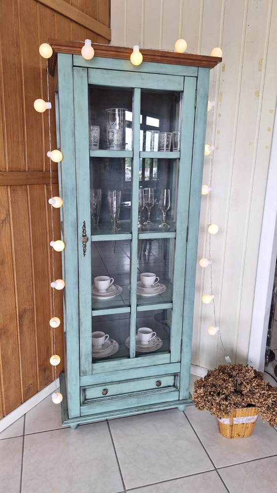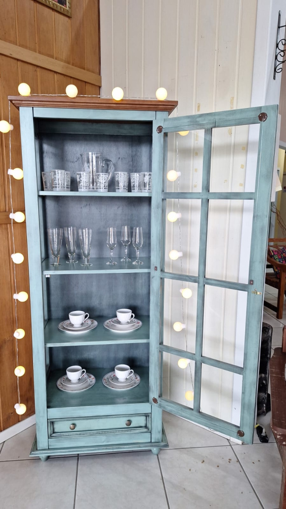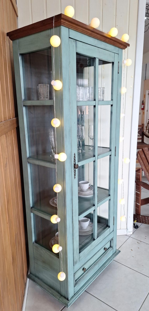 3467 - Cristaleira Provença Verde Antigo Envelhecido Texturizado com teto na cor Castanho