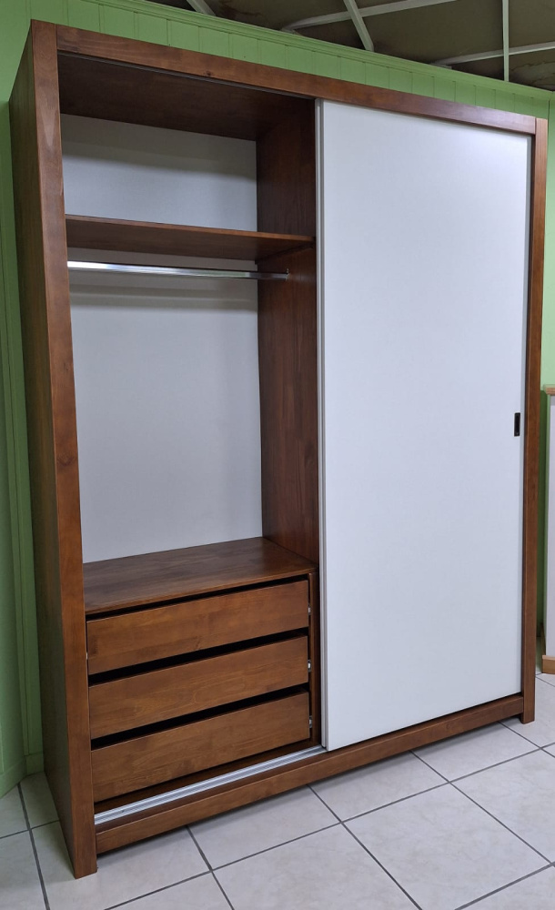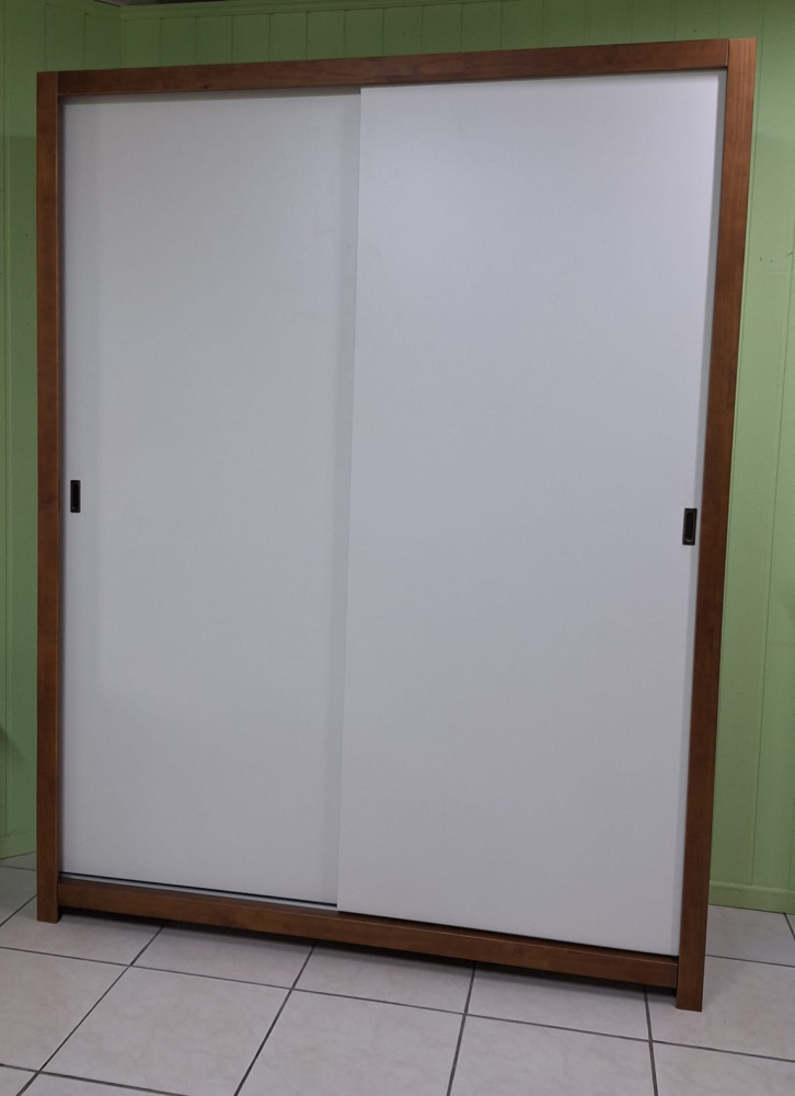 3470 - Roupeiro com portas de correr Castanho com portas Brancas