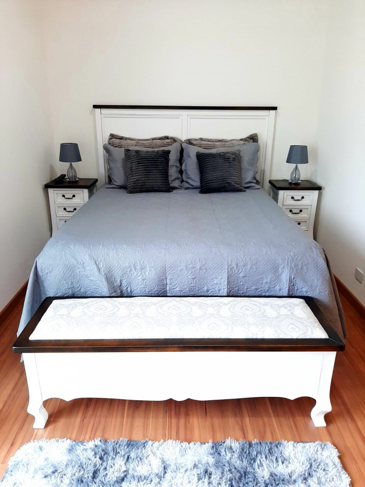 3483 - Cama de Casal Luis Felipe Branca Laqueada com Castanho Envelhecido - para colchão 1,38