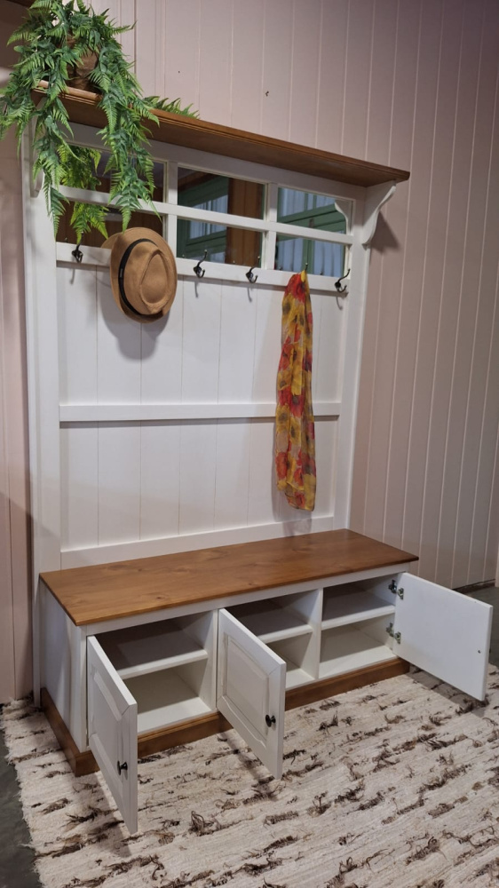 3485 - Chapeleira com Portas Provençal (branco envelhecido) com detalhes na cor Cêra