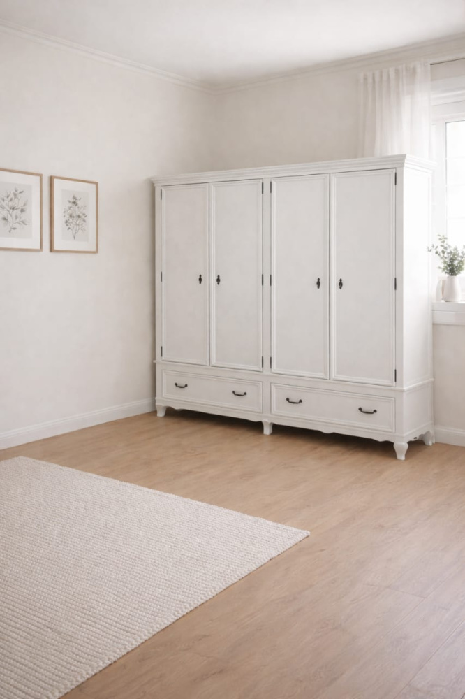 3499 - Roupeiro Luis Felipe 04 portas e 02 gavetas Branco Laqueado