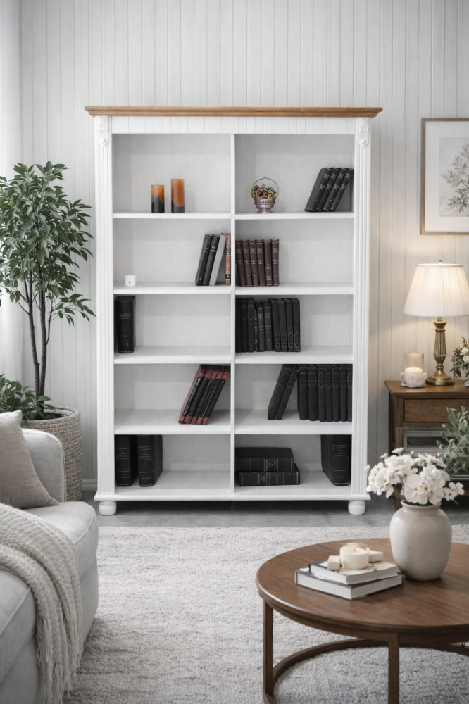 3520 - Estante Livreiro Dupla Provençal(branco envelhecido) com teto Castanho
