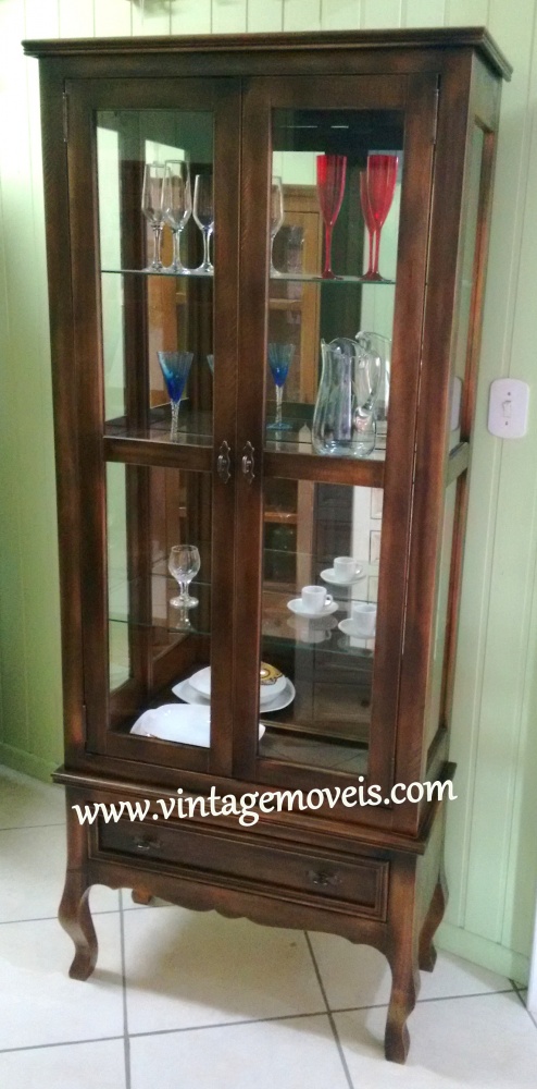 548 - Cristaleira Charlotte 02 portas Alta Castanho Envelhecido com Espelho e Prateleiras de Vidro
