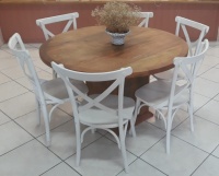 2545 - Conjunto de Mesa Redonda em Madeira de Demolição com 06 Cadeiras Berlim Provençal