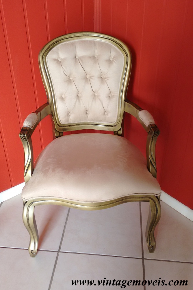 1107 - Poltrona Luis Felipe Dourado Envelhecido com Encosto Estofado com Capitonê