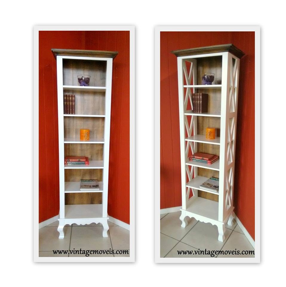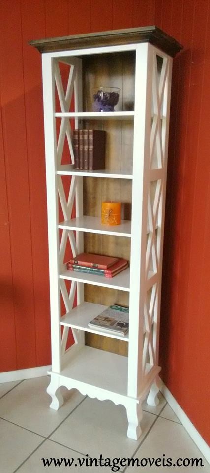 1734 - Estante "X" Estreita Alta com Pés Luis Felipe Branca Laqueada com Castanho Envelhecido
