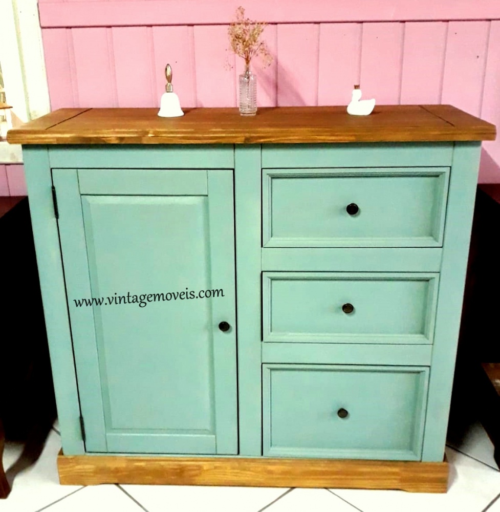 1958 - Cômoda Sapateira Rustica Verde Antigo Envelhecido com Cêra