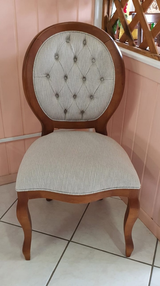 1976 - Cadeira Medalhão Castanho Encosto Estofada com Capitonê