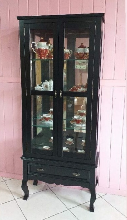 2091 - Cristaleira Charlotte 02 Portas Alta Preta Laqueada