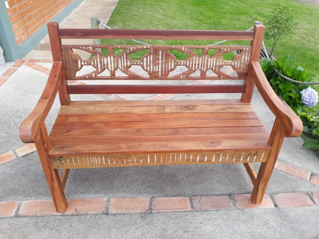 2122 - Banco de Jardim 02 Lugares em Madeira de Demolição