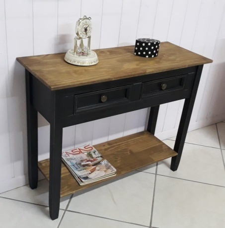 2136 - Aparador Reto 02 gavetas Preto Envelhecido com Cêra