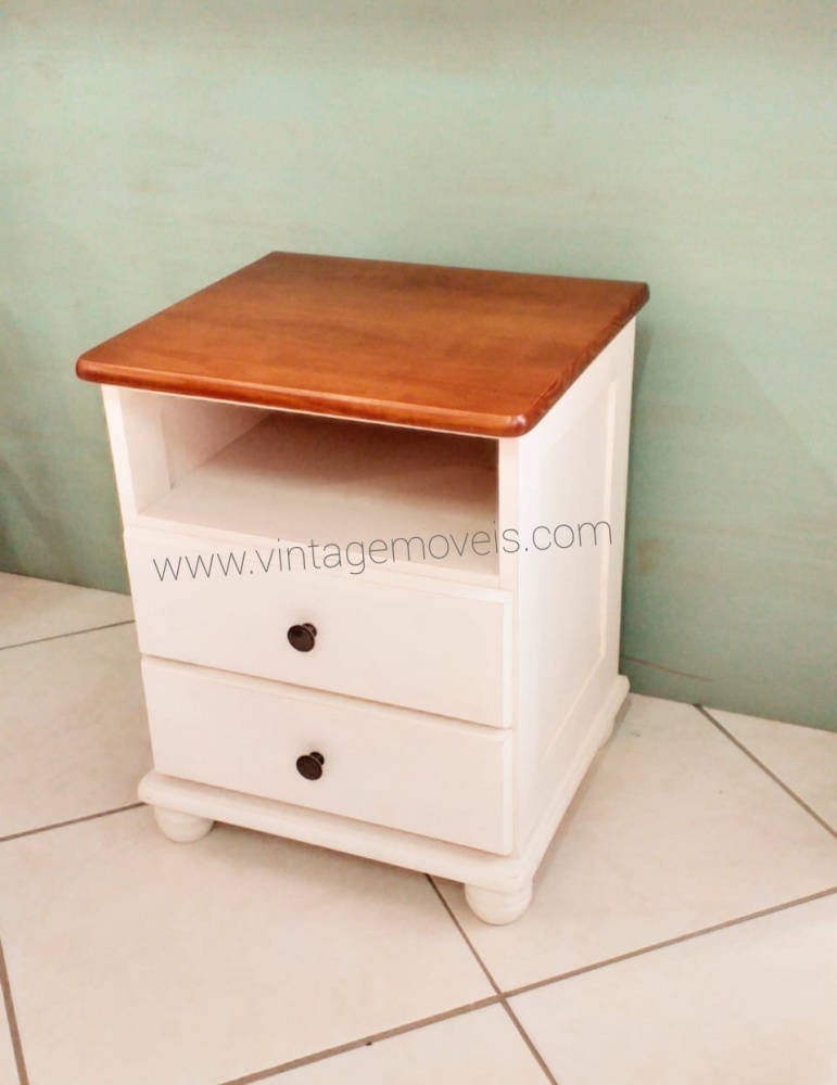 2189 - Mesa de Cabeceira Colonial Provençal com tampo Castanho 02 Gavetas