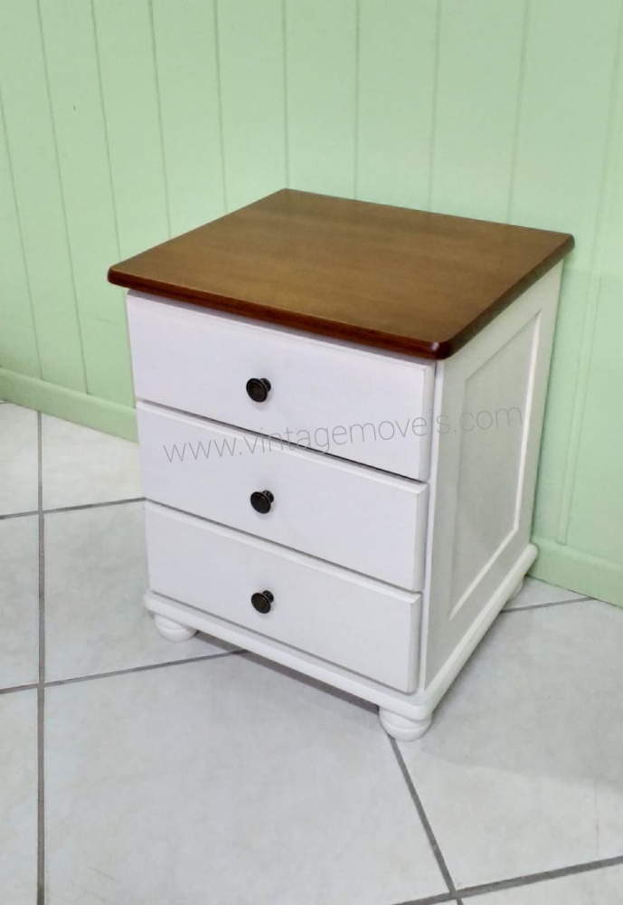 2190 - Mesa de Cabeceira Colonial Provençal com tampo Castanho 03 Gavetas