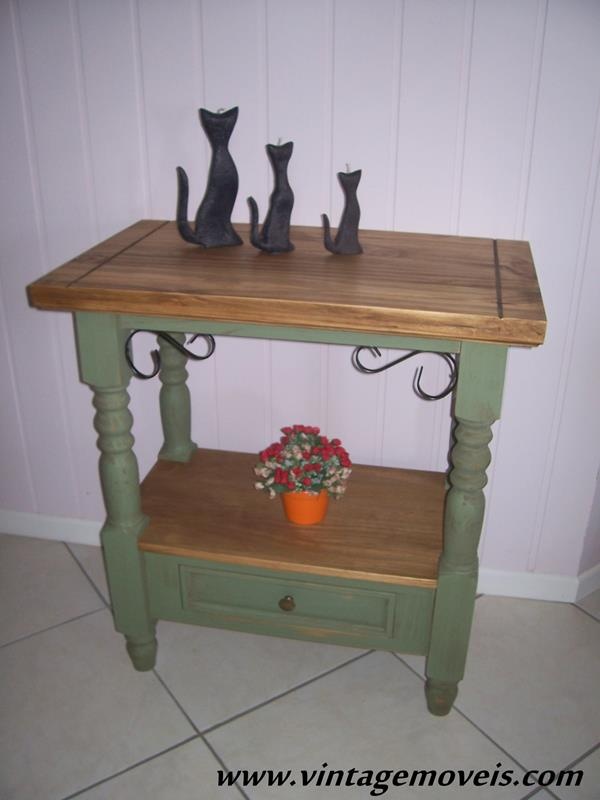 230 - Aparador 04 Estações 01 Gaveta Verde Musgo Envelhecido com Cêra