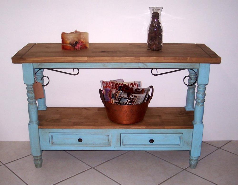 233 - Aparador 04 Estações 02 Gavetas Azul Envelhecido com Cêra