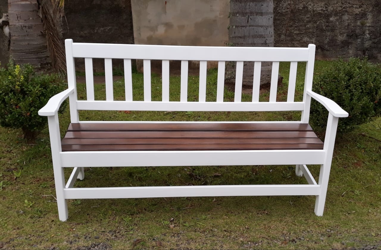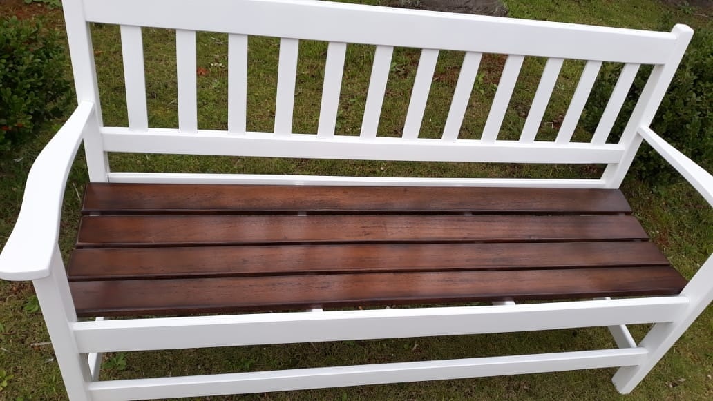 Banco de Jardim 03 lugares em Eucalipto Branco Laqueado com Castanho Envelhecido