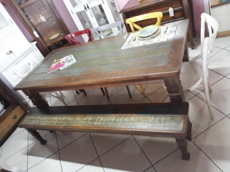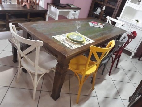 2358 - Conjunto de Mesa com 01 banco Rústico P.A com 05 cadeiras X Coloridas
