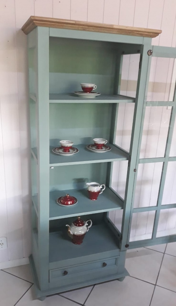 2385 - Cristaleira Provença Verde Antigo Envelhecido com Cêra