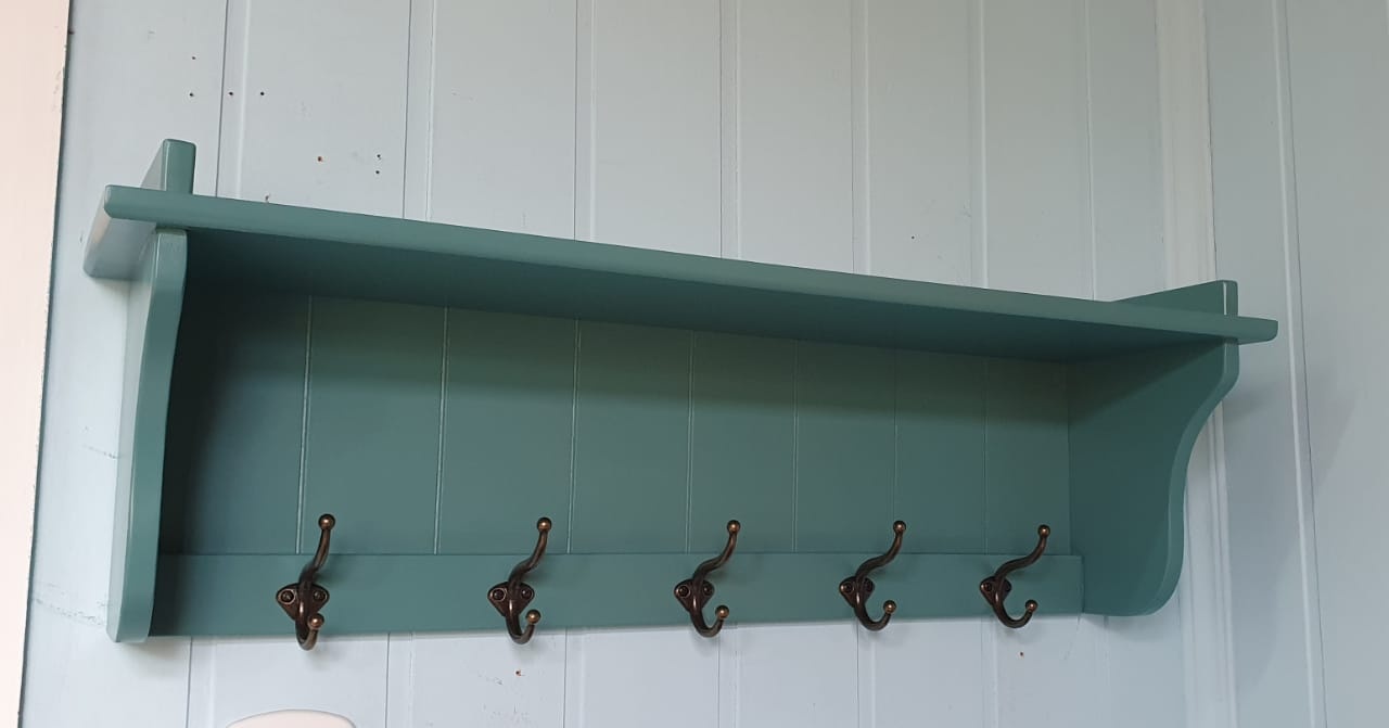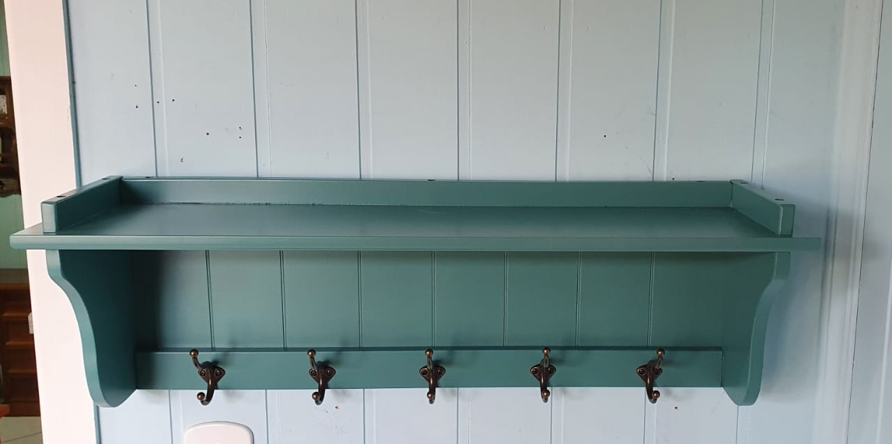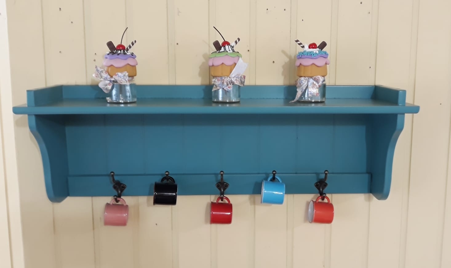2564 - Prateleira Grande com Ganchos Azul Antique Laqueado