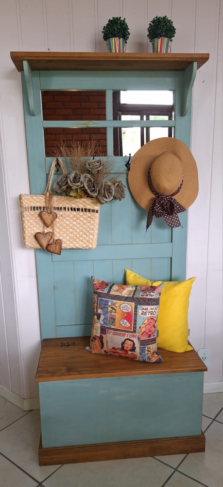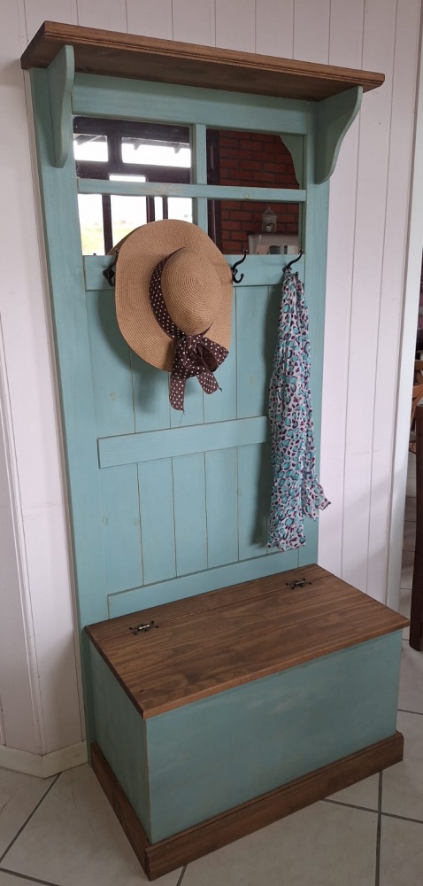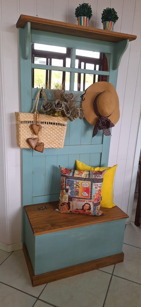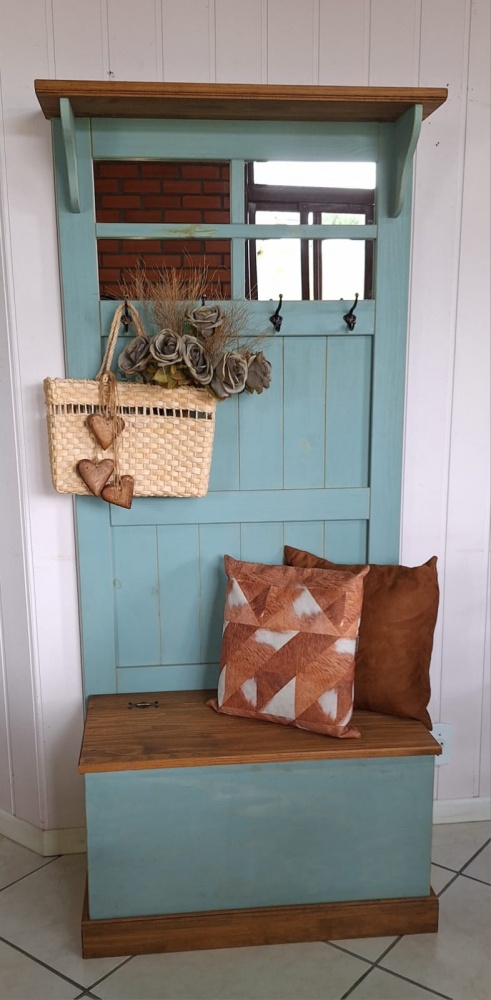 2873 - Chapeleira com Baú Verde Antigo Envelhecido com Cêra