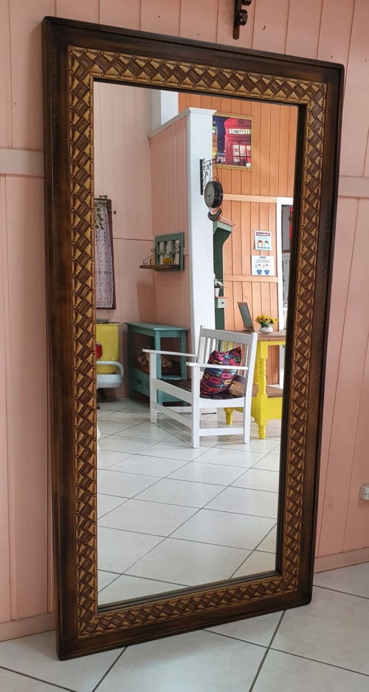 2986 - Espelho Grande com Moldura Decorada Castanho Envelhecido