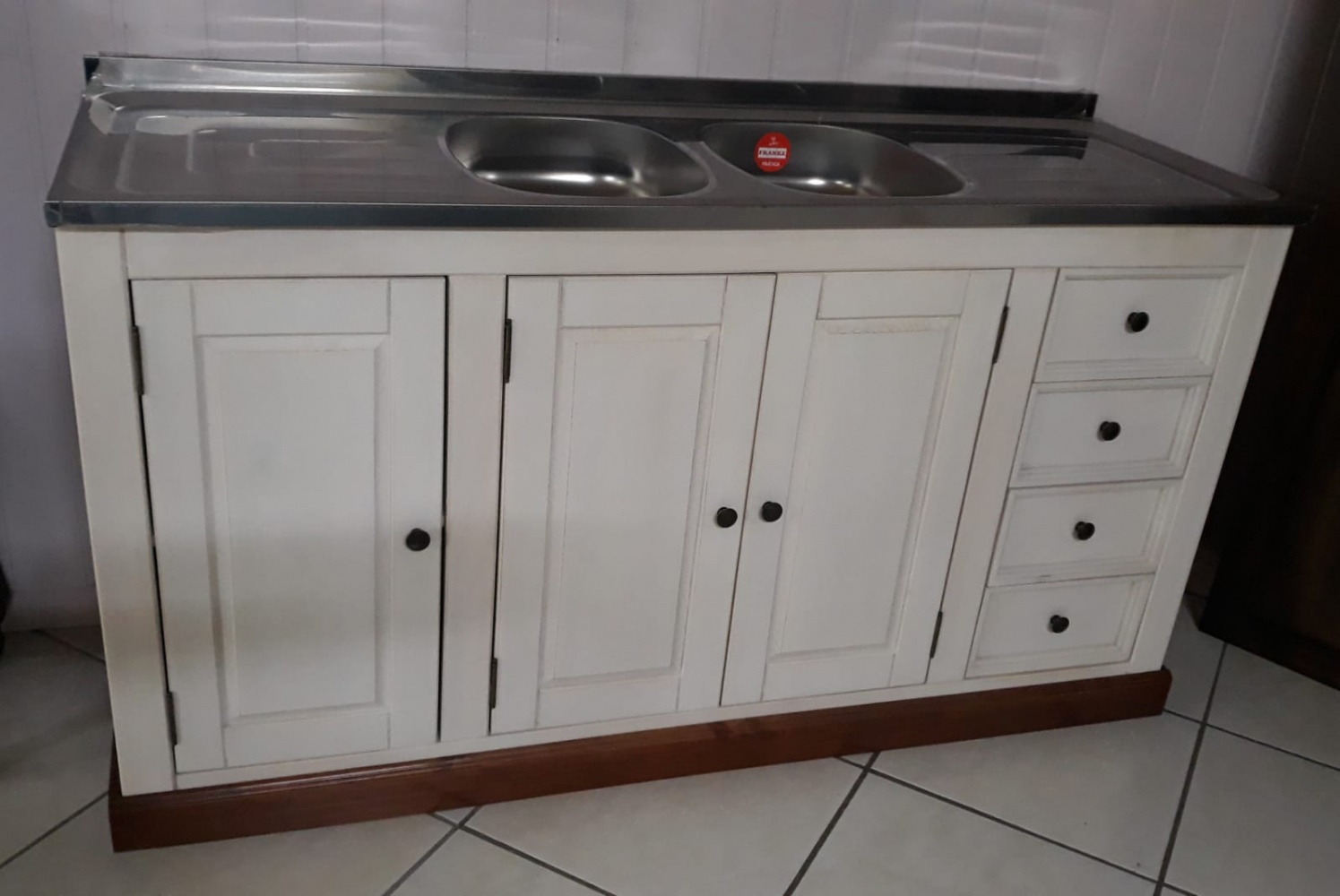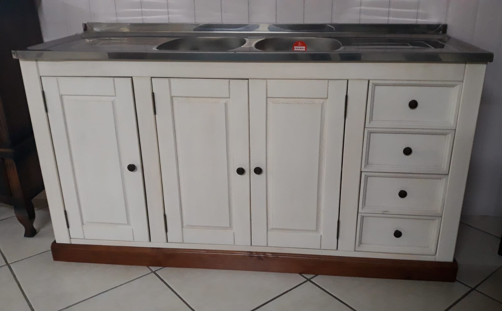 3055 - Balcão de pia com rodapé Provençal com Castanho - sem tampo