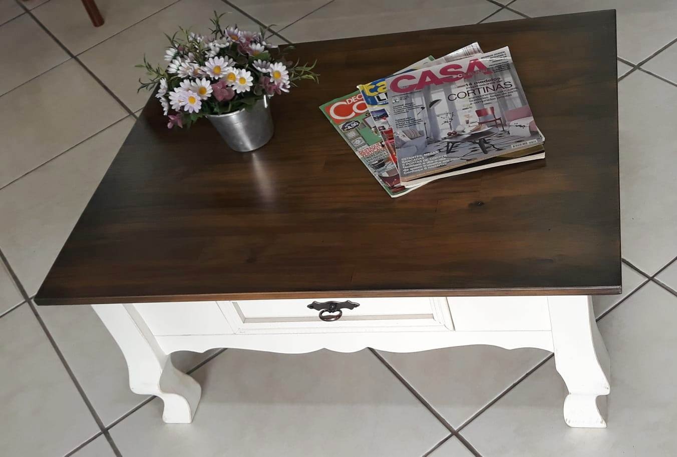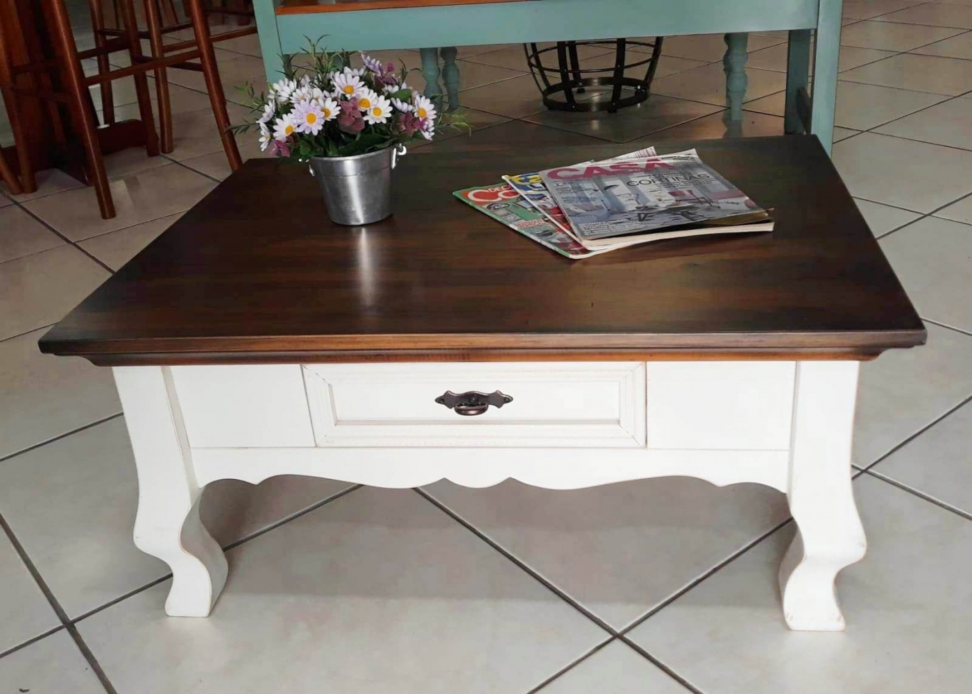 3083 - Mesa de Centro com pés Luis Felipe Provençal com Castanho Envelhecido