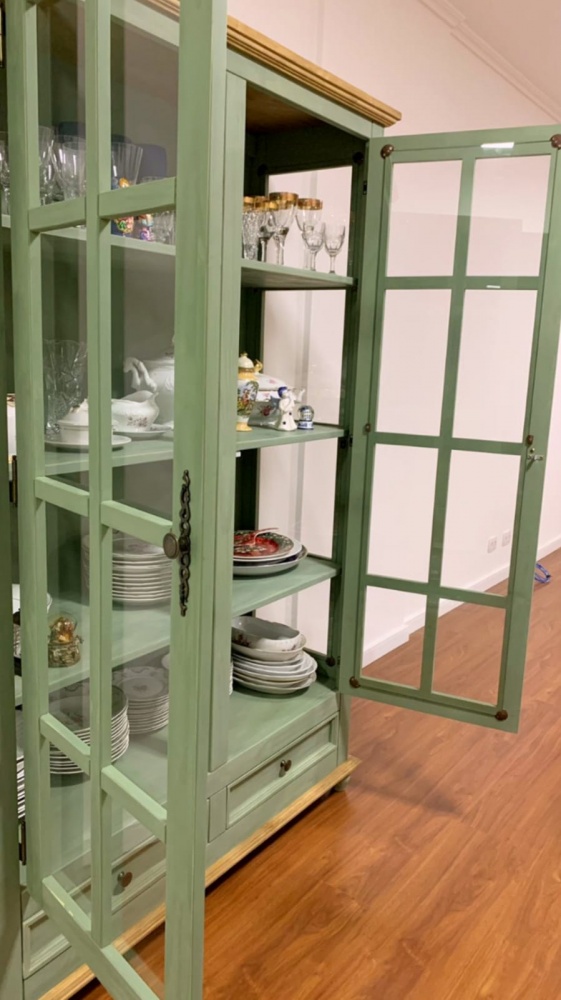 41 - Aéreo (portas com vidro) 03 Portas Verde Musgo envelhecido com Cêra