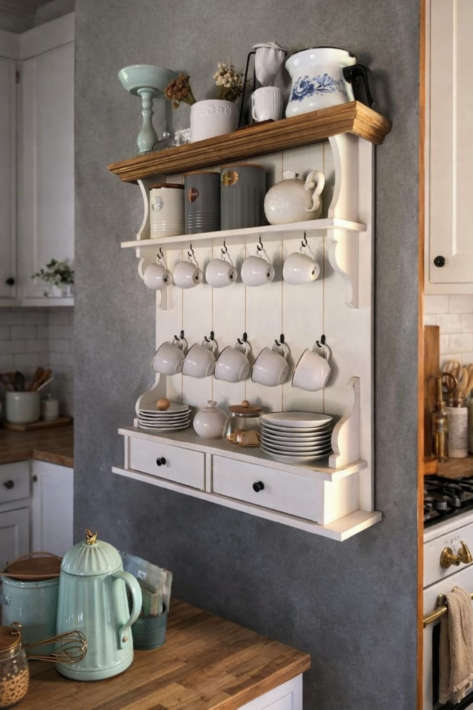 Porta Xicaras Provençal(branco envelhecido) com teto na cor Cêra