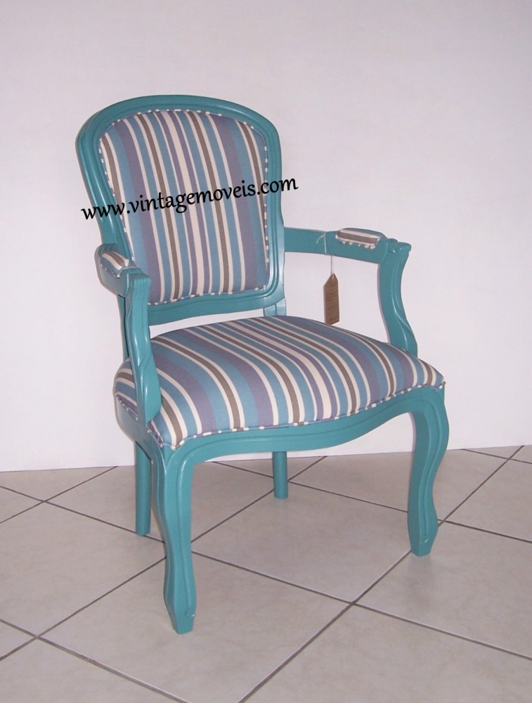 762 - Poltrona Luis Felipe Azul Antique Laqueada com Encosto Estofado em Capitonê