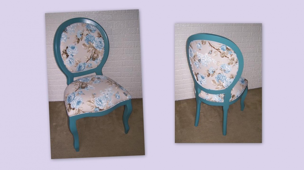 800 - Cadeira Medalhão Azul Turquesa Encosto Estofado com Capitonê