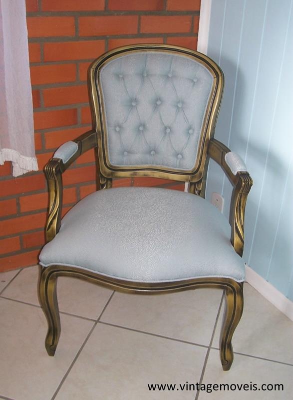 823 - Poltrona Luis Felipe Dourado Envelhecido Encosto Estofado em Capitonê